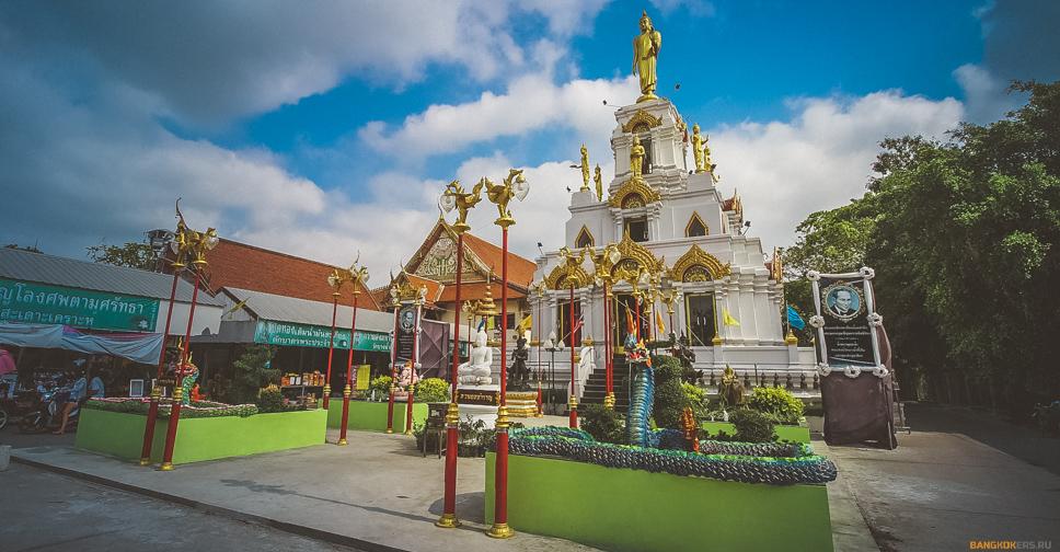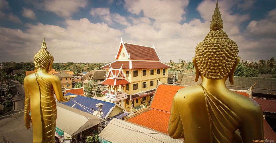 Посетим необычный храм Wat Bang Nam Phueng Nai. Поднимемся на смотровую площадку храма. Узнаем о религии и традициях тайцев.