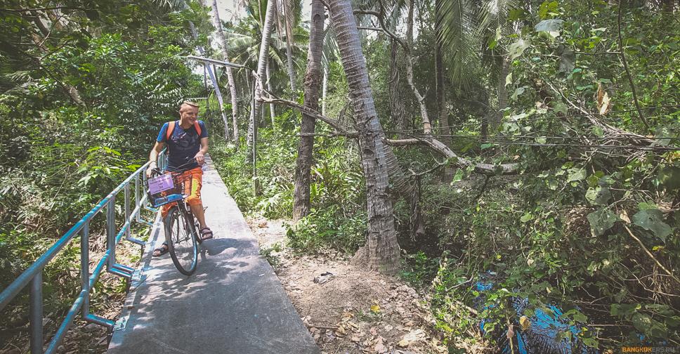 Перебравшись на полуостров Банг крачао, мы пересаживаемся на велосипеды. Для наших гостей предусмотрены различные модели, в том числе и детские велосипеды.