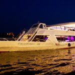 Великолепный ужин, состоящий из множества блюд из морепродуктов, мяса и рыбы. Различные салаты, суши, фрукты, десерты, знакомство с национальной кухней. На борту играет живая музыка, исполняются композиции на разных языках. Во время круиза, пассажиры смогут увидеть архитектурные изыски красочно иллюминированного ночного Бангкока.